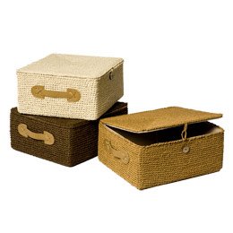 Size - 13" x 11-1/2" x 6" h. For storing everything from clothing in the closet to reading materials in the den, our Crochet Box is an attractive solution. It is lined in a soft fabric and features handles for carrying. A recycled button closure keeps contents secure.||Made from 100% recycled hand-woven paper over fiberboard | Handles offer look and feel of leather | Linen-like lining