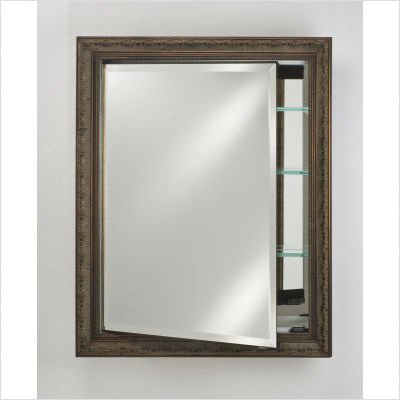 [***INCLUDED IN THIS SET: (2)Signature Recessed Single Door Medicine Cabinet, (2)Signature 5 X Magnifying Mirror] Size: 24" x 30", Finish: Brushed Satin Gold Shown in Sienna Bronze Afina Signature cabinets are made of rust proof satin anodized aluminium. They have no visible hinges and feature a three mirror design. The adjustable glass shelves are engineered to the highest standards of today's technology for long lasting durability and elegance. Features: -Signature collection -Recessed single door medicine cabinet -Available in over 40 frame styles & colors -Available in 5 sizes: -17'' x 26'' -17'' x 30'' -20'' x 26'' -24'' x 30'' -24'' x 36'' -0.75'' perimeter bevel mirror standard -0.37'' thick adjustable glass shelves -Rust proof gray satin anodized aluminum construction -3 mirror design (front bevel mirror, mirror behind door and inside mirror back) -Frame will add to overall dimensions, please see specifications sheet for exact outside dimensions by frame style -Overall Dimensions: 26 - 36'' H X 17 - 24'' W Specifications -Cabinet measures 4.37'' in depth -With recessed mount, less then 4'' go into wall, the frame is completely flush to the wall -Door has pivot hinge which pivots into cabinet body -Hinge is securely screwed into the door for ease of removal and remounting the door -Frame is independent of door and is mounted to the perimeter of cabinet body -Cabinet can be hinged on either side by rotating cabinet 180 and then repositioning door pull Options -Optional 5x magnifying mirror available -Optional mirrored sides with surface mounting hardware available for surface mounting Care -For care use a mild cleanser, applied first to a rag or paper towel -Do not spray cleaner directly onto the mirror or frame Installation Instructions: -For protection during shipping glass shelves are placed inside cabinet body -They are label marked ''GLASS SHELVES'', please remove before installation - Shelf pins are inside the cabinet in an envelope marked ''SHELF PINS