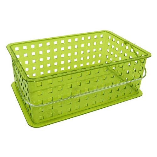 Easily portable, spacious, sturdy, the Zia Medium Basket is a multi-utility storage basket. Made from tough plastic this basket can be used to store a variety of items or accessories. This medium-sized storage basket can even hold most of your laundry supplies. This same basket can simplify kitchen storage; it can be filled with cleaning items or cooking utilities, and placed in a corner of the kitchen. This storage basket can be used as a shower tote in the bathroom, and utilized to store bath and shower products like shower gel, shampoo, etc. With the sturdy chrome-plated handle, you can carry it around easily. This storage basket has a stylish, clear body that facilitates viewing the contents stored inside.